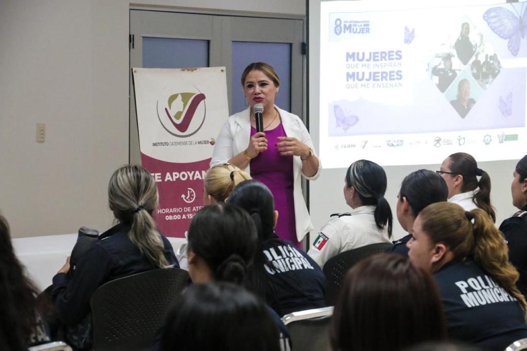 04 de marzo, 2024 – En el marco del Día Internacional de la Mujer que se conmemora este próximo 08 de marzo, el Instituto Cajemense de la Mujer llevó a cabo una capacitación para reconocer la importante labor que realizan diariamente las agentes de la Secretaría de Seguridad Pública Municipal.