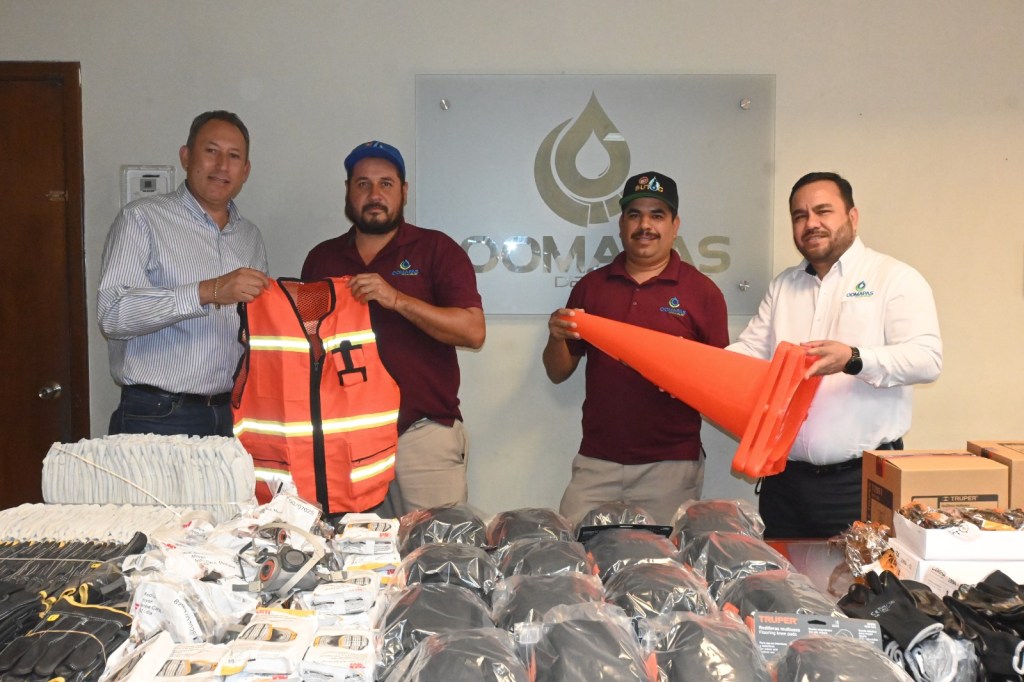 Cajeme, 14 de mayo, 2025- Con el objetivo de cumplir con el compromiso establecido por el presidente municipal Javier Lamarque, de brindar las mejores condiciones de trabajo al personal del organismo operador municipal de agua, alcantarillado y saneamiento de Cajeme; el director administrativo, Omar Acosta, acompañado del contralor Roberto Valenzuela, entregaron a nombre del director general Luis Alberto Ruiz, equipo de seguridad y protección a los trabajadores de la áreas de equipos de desazolve, cortes y lectura.