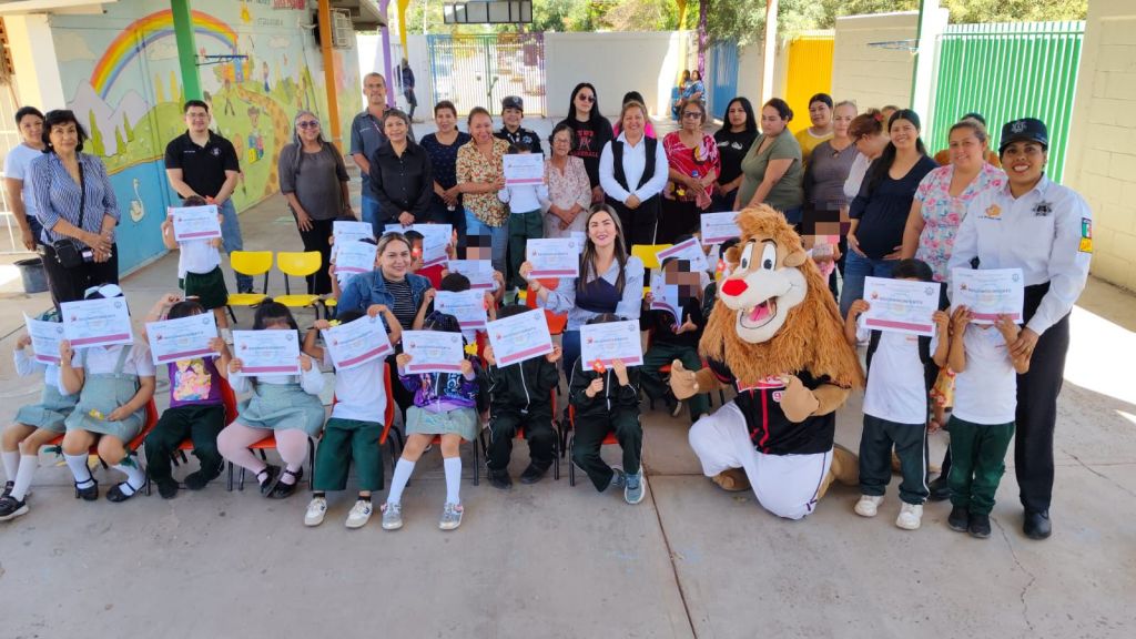Cajeme, 22 de marzo, 2026 – El personal de la Dirección de Programas Preventivos de la Secretaría de Seguridad Pública Municipal (SSPM) llevó a cabo la graduación del programa DARE con alumnas y alumnos del Preescolar Luis Pasteur, en el Campo 5, tras varias semanas de pláticas enfocadas en la prevención.